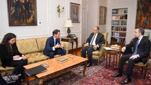 وأردف حافظ، أن اللقاء تطرق أيضاً إلى تطورات ومجمل القضايا الإقليمية، حيث تم التأكيد على ضرورة الدفع بأطر التضامن والعمل العربي المشترك في مواجهة التحديات المختلفة التي تشهدها المنطقة حفاظاً على الأمن القومي العربي، وأن تكون الحلول المطروحة لأزمات المنطقة عربية خالصة وتحدد الشعوب العربية مصيرها بنفسها على نحو يُلبي تطلعاتها في العيش في سلام وأمن ومزيد من الرخاء.