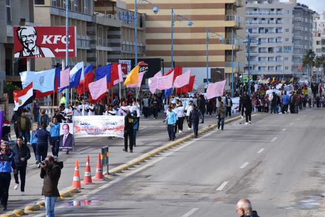 وأعقب ذلك طابور عرض للفرق الرياضية والمدرسية والفنية والكشافة، وعرض لسيارات ومعدات المديريات والقطاعات المختلفة، و هى مزينة بأعلام مصر والزهور واللافتات.
