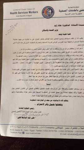 أشار رئيس النقابة العامة فى رسالته لوزيرة الصحة إلى أن الأداء المتميز يشارك فيه جميع العاملين داخل المنظومة على السواء مطالبا بضرورة شمول قانون المهن الطبية رقم 14 لسنة 2014 جميع الفئات المساعدة التى تواجه نفس الأخطار المهنية أثناء عملهم وهم: الفنيين، والسائقين، والإداريين، وعمال تشغيل الأجهزة الهندسية والكهربائية والخدمات المعاونة.