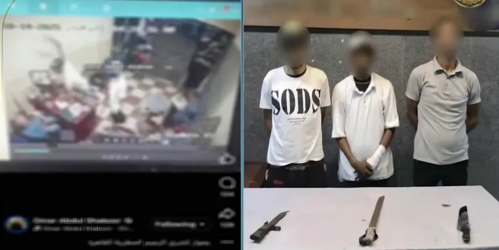 بالفحص تبين عدم ورود ثمة بلاغات فى هذا الشأن ، وأمكن تحديد وضبط مُرتكبى الواقعة، وتبين أنهم 3 أشخاص – مقيمين بدائرة قسم شرطة المطرية، وبحوزتهم 3 أسلحة بيضاء "المستخدمين فى ارتكاب الواقعة.